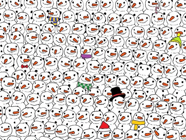 | from http://www.sun-gazing.com/quiz-can-find-panda-hiding-amongst-snowmen/ |